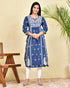 Hand Embroidery Chikankari Long Kurti for Women - Blue