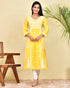 Hand Embroidery Chikankari Long Kurti for Women - Yellow