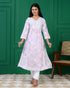 Mul Printed Hand Embroidery Chikankari Kurta- Lilac
