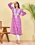 Mul Printed Hand Embroidery Chikankari Kurta- Purple