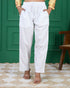 Chikankari Embroidered Cotton White Relaxed Pants Trousers