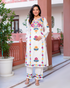Kashmiri Aari Work Cotton Long Kurta Set - White
