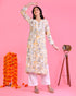 Chikankari Long Kurta in Muslin Cotton for Women- Beige With Yellow Flower