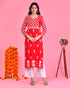 Red Modal Angrakha Style Kurta in Modal Cotton